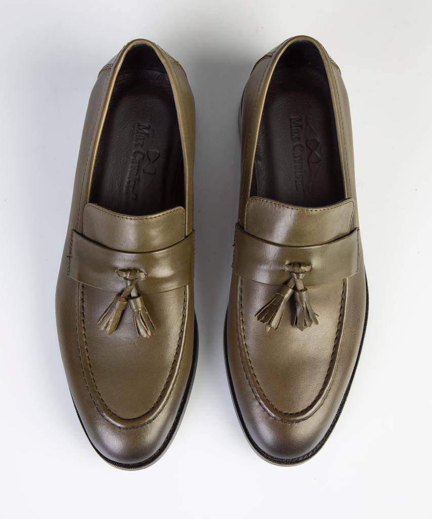 Olive Green Tassel Loafers – 100% Turkish Leather
